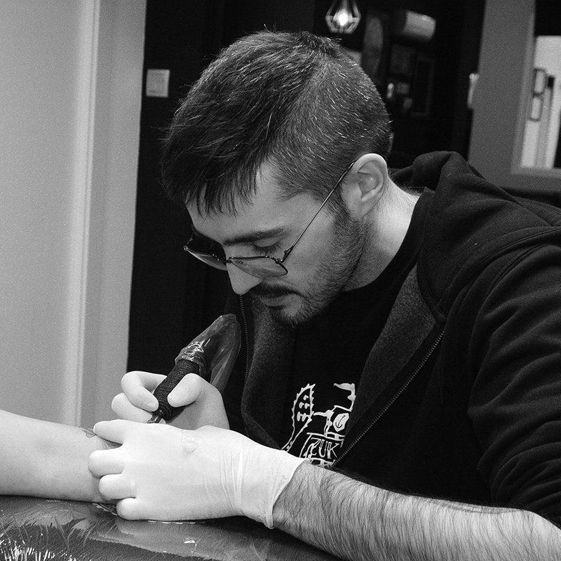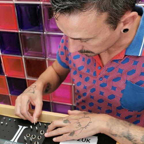 Formación en Bellas Artes, diseño gráfico, tatuaje y gestión financiera. Se encarga de la gestión del estudio, atención al cliente y también puede hacer el diseño de tu tatuaje geométrico.