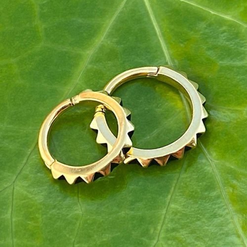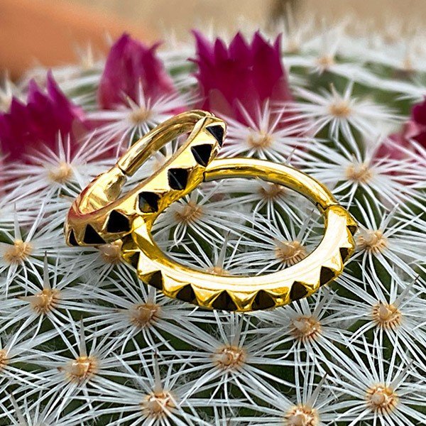 - Aro de acero quirúrgico con baño de oro 24 kt. y textura de pirámides.