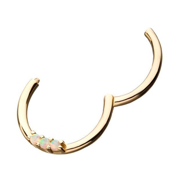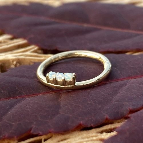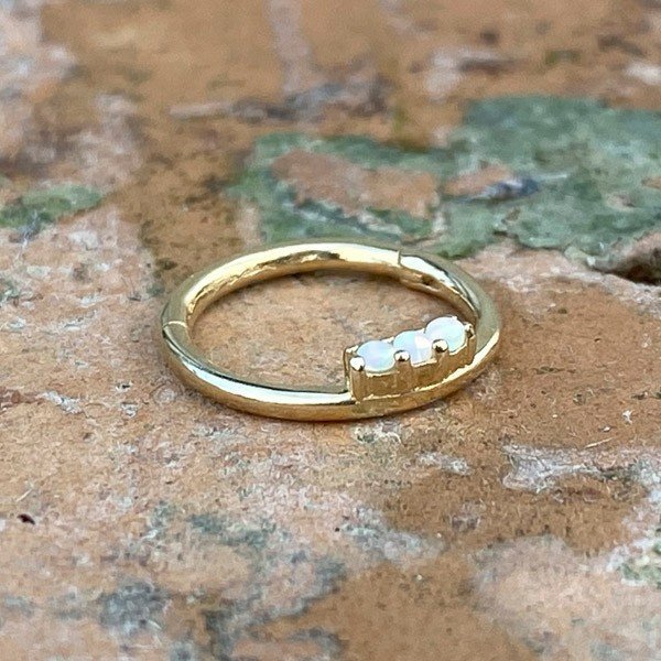 - Aro de oro macizo de 14 Kt. con 3 ópalos sintéticos blancos.