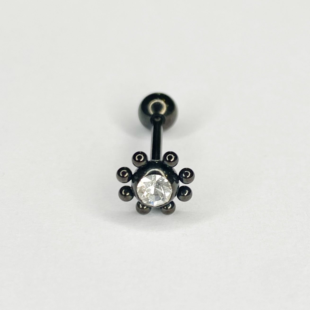 Barbell lengua acero con una flor negra y una zirconia