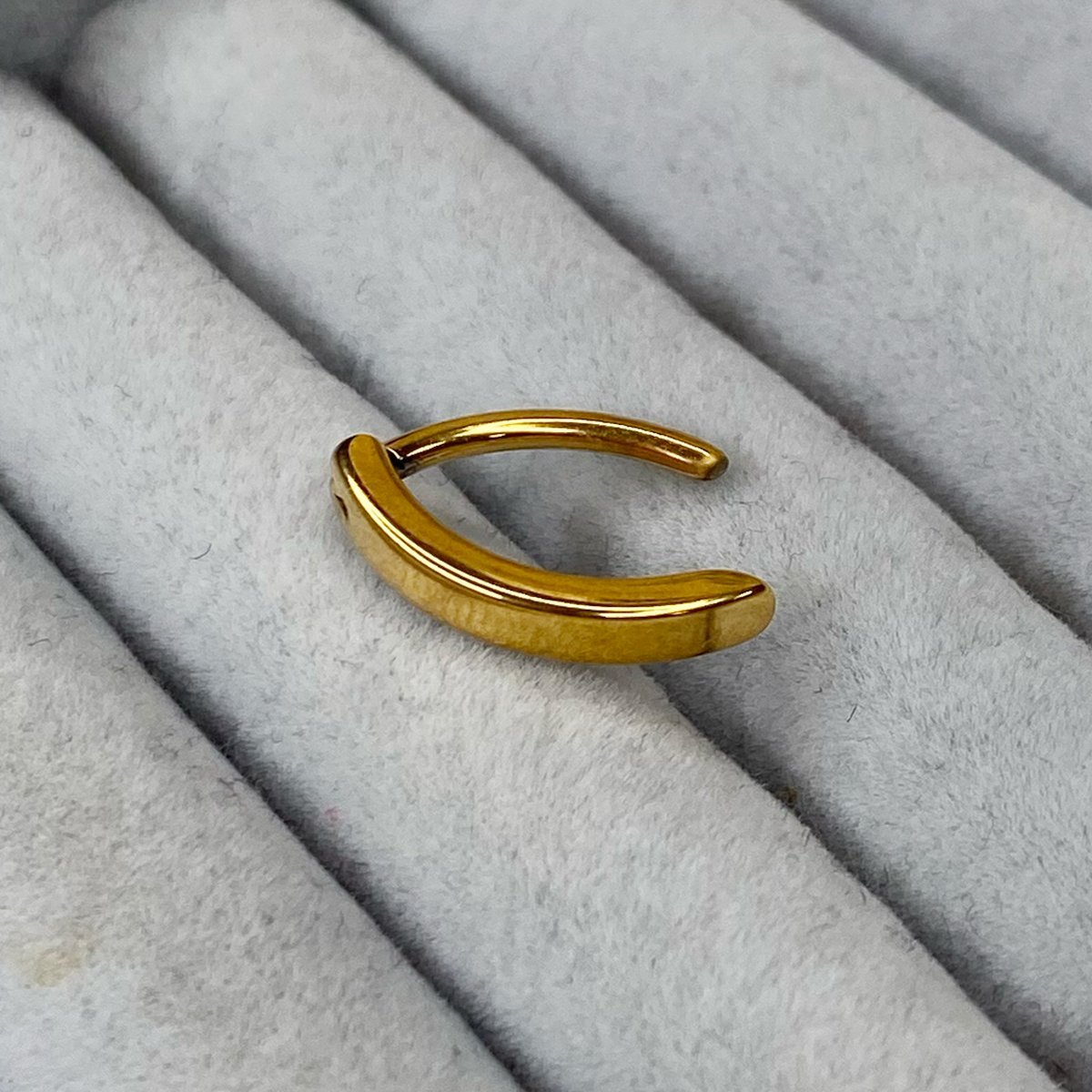 Clicker curvo para ombligo de titanio grado implante libre de níquel con baño de oro PVD de 24 Kt.