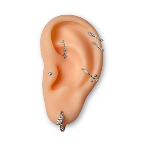 - Para piercing de oreja: lóbulo y hélix.